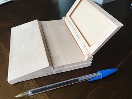I tried to find a filament colour that was close to the original. I chose a Light-beige EconoFil PLA from Filaments.ca. The PLA seems to print fairly well. PLA printers are good, but surfaces are not perfect. I am investigating options for filling, sanding and painting the case. I am also working with Bil to find the best colour match for the prototypes. Also, since Mike's visit to Jeff and the new pictures of Jeff's prototype I will be refining my case to more closely match his. This will involve rounding off edges and adding more detail.