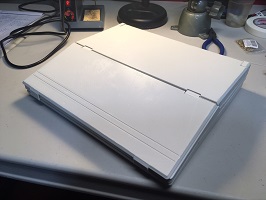 Due to the small size of the case, fitting the display electronics was a challenge. The RGB2HDMI and LCD controller buttons needs to be available. Originally I was going to mount the RGB2HDMI on the bottom with a small window for the buttons. After a lot of thought I decided to locate them in the battery compartment area. As seen in picure below this was not easy. In fact there is only a few millimeters of clearance between the VIA chip and the RGB2HDMI board. Cable management was also tricky, but in the end it all worked out. As the display is connected via HDMI the VGA and composite connectors can be removed for a bit more space.
