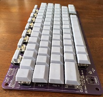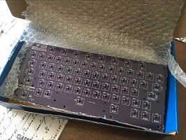 Mike and I had a few keyboard pcb's made of the inverted-T design and they have been assembled using standard MX switches. Custom cherry mx keycaps have been designed and have arrived. There was one missing VIA on the first revision but that was easily fixed.
