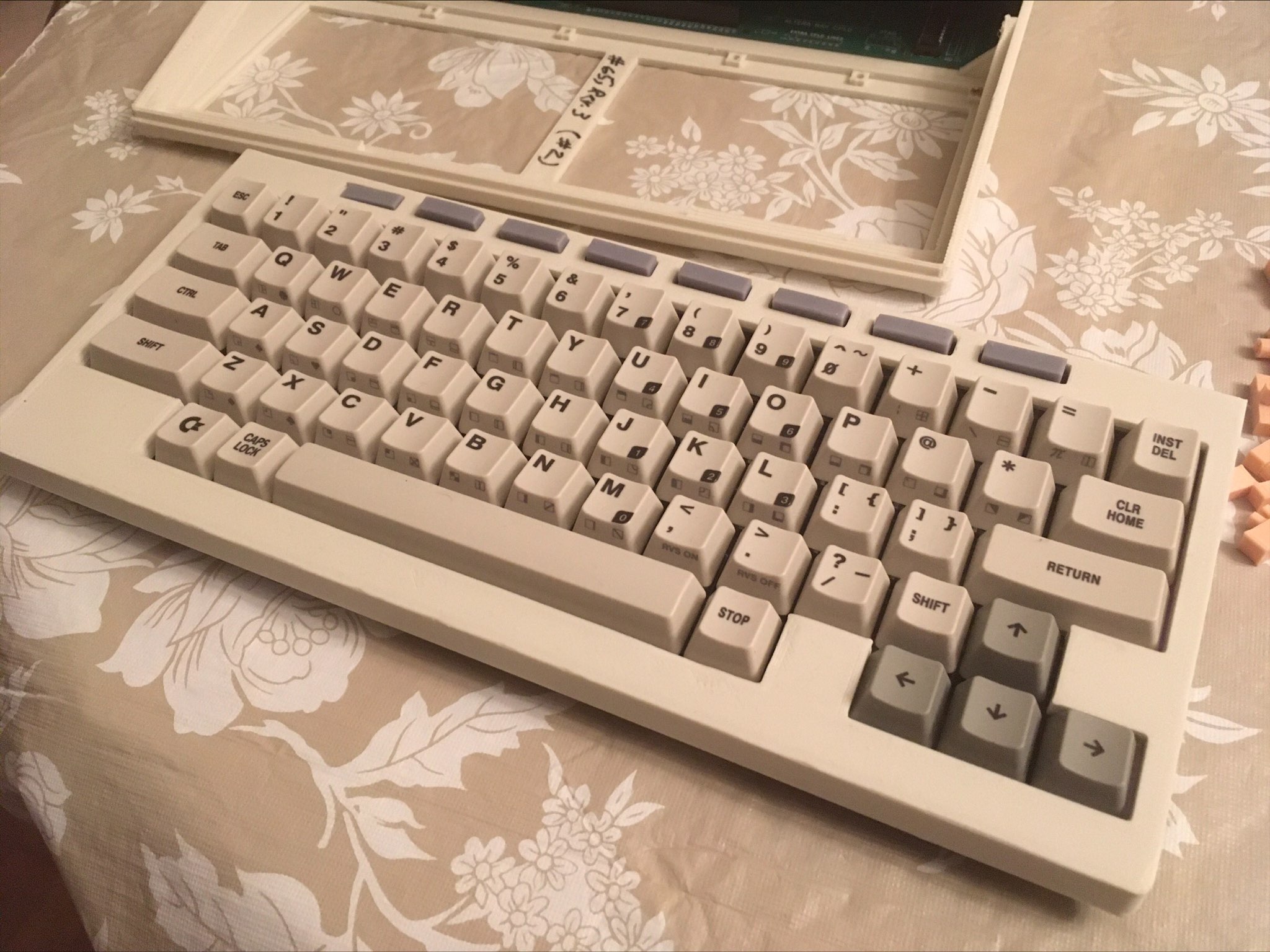 I do have some ideas about making a better, more accurate keyboard. I recently purchased a high-resolution resin printer which will give us the ability to create very accurate low-profile keycaps, as well as making correct size MX-compatible function-keys. The function keys are very wide and slim and I have not seen any commercial keycaps that come close. The first non-test resin prints I did were the CLCD function keys. I downloaded an MX keycap and used the stem from that, but replaced the top part with a simple rectangular block like the actual keycaps. These did not fit. Upon checking I discovered that the stem dimensions were too small. I adjusted the sizing and added some bevelling to the bottom face as well as the internal post hole. I reprinted them and they fit! Low-profile keycaps for the rest of the keyboard are in the works. We can still use standard MX switches and the existing inverted-t keyboard design but with much better looking keycaps. Once that is done I will look into re-designing the PCB to be an exact replica of the CLCD keyboard layout including the arrow-shaped cursor keys.